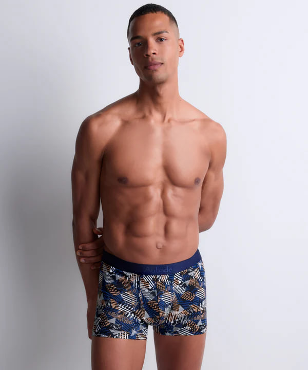 Труси - боксери виконані з бавовни та модалю з оригінальним принтом. Еластичний пояс з логотипом Aubade. Передня панель дубльована. Для максимального комфорту – бічні сторони безшовні.