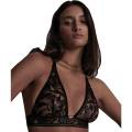 Бюстгальтер - балконет з м'якою, достатньо, відкритою формою чашок на кісточках. Чашки бюстгальтера виготовлені з тюлю з вишивкою з оксамитовим напиленням. Центральна та бічні панелі доповнені вставками з гіпюру. Регульовані бретелі виконані з нееластичного гіпюру та доповнені металевими кільцями