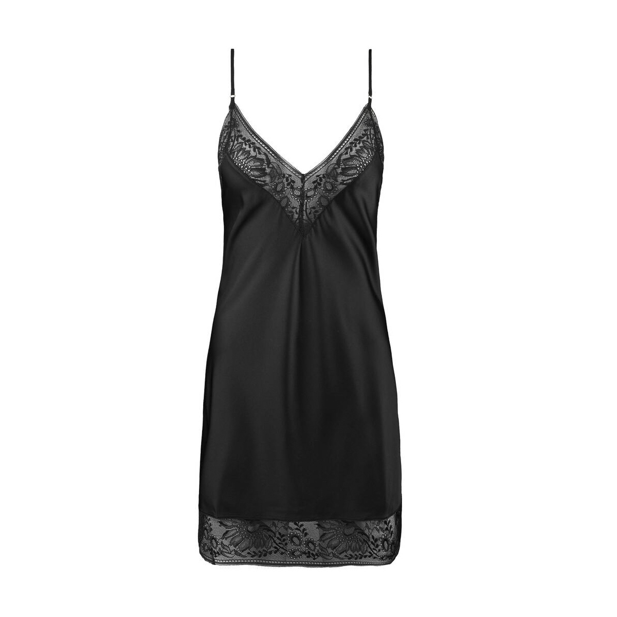 Коротка комбінація вільного крою з V - подібним вирізом на тонких перехресних бретелях, що регулюються. По-верхньому та нижньому краю доповнена розкішним мереживом. Виконана з еластичного шовку.