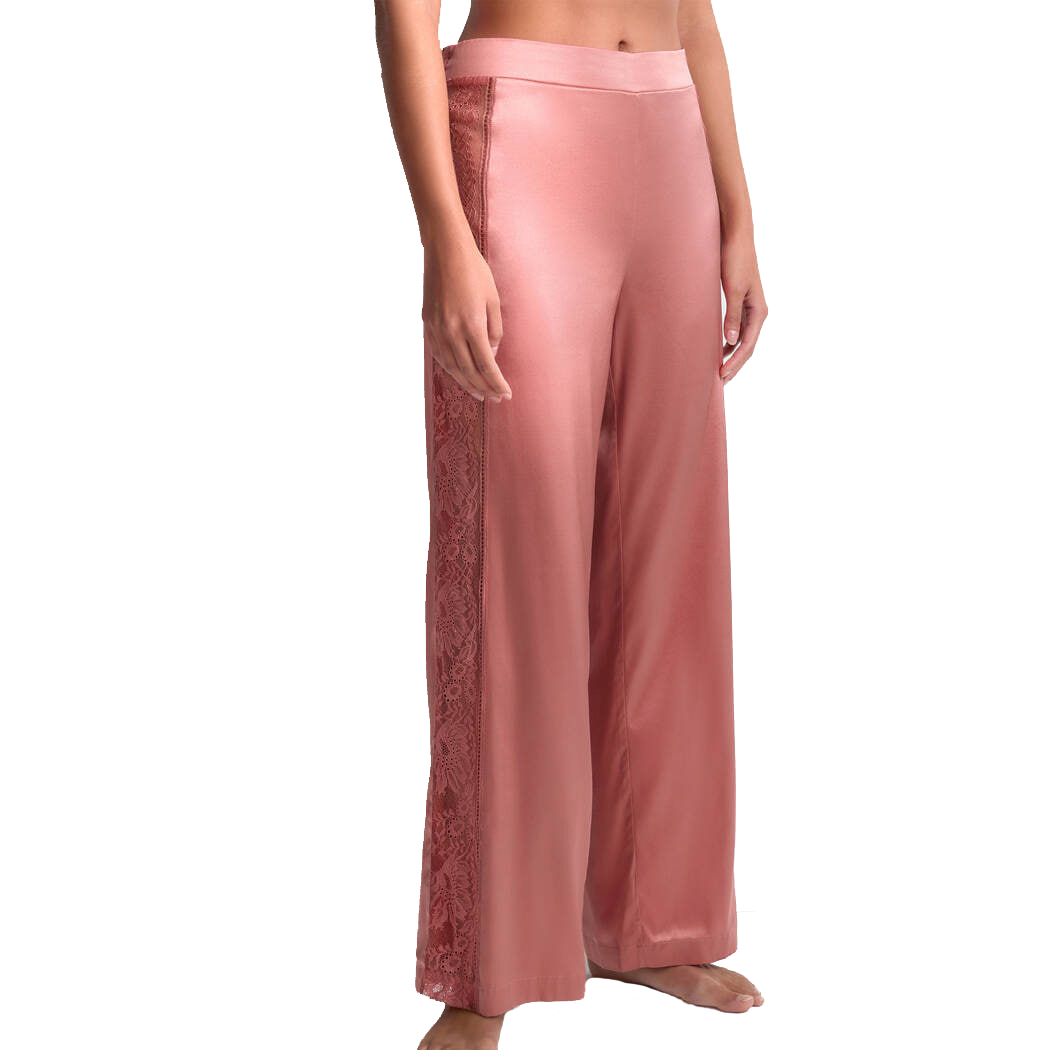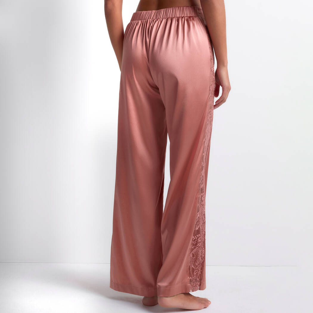 Шовкові піжамні штани вільного крою. Мають широкий еластичний пояс в області талії. Бічні панелі мають вставки з тюлі із мереживними листовими візерунками.