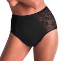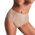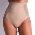 Стягуючі труси-панталони із завищеною посадкою створені для ідеального силуету. Виконані із міцної еластичної тканини, вони забезпечують ефект плоского живота та комфортну посадку протягом усього дня. Бічні панелі прикрашені витонченими вставками з прозорого тюлю з жакардовим мереживом з квітковим орнаментом, що додає жіночності та витонченості. Еластичний пояс м'яко фіксує модель, не створюючи тиску.