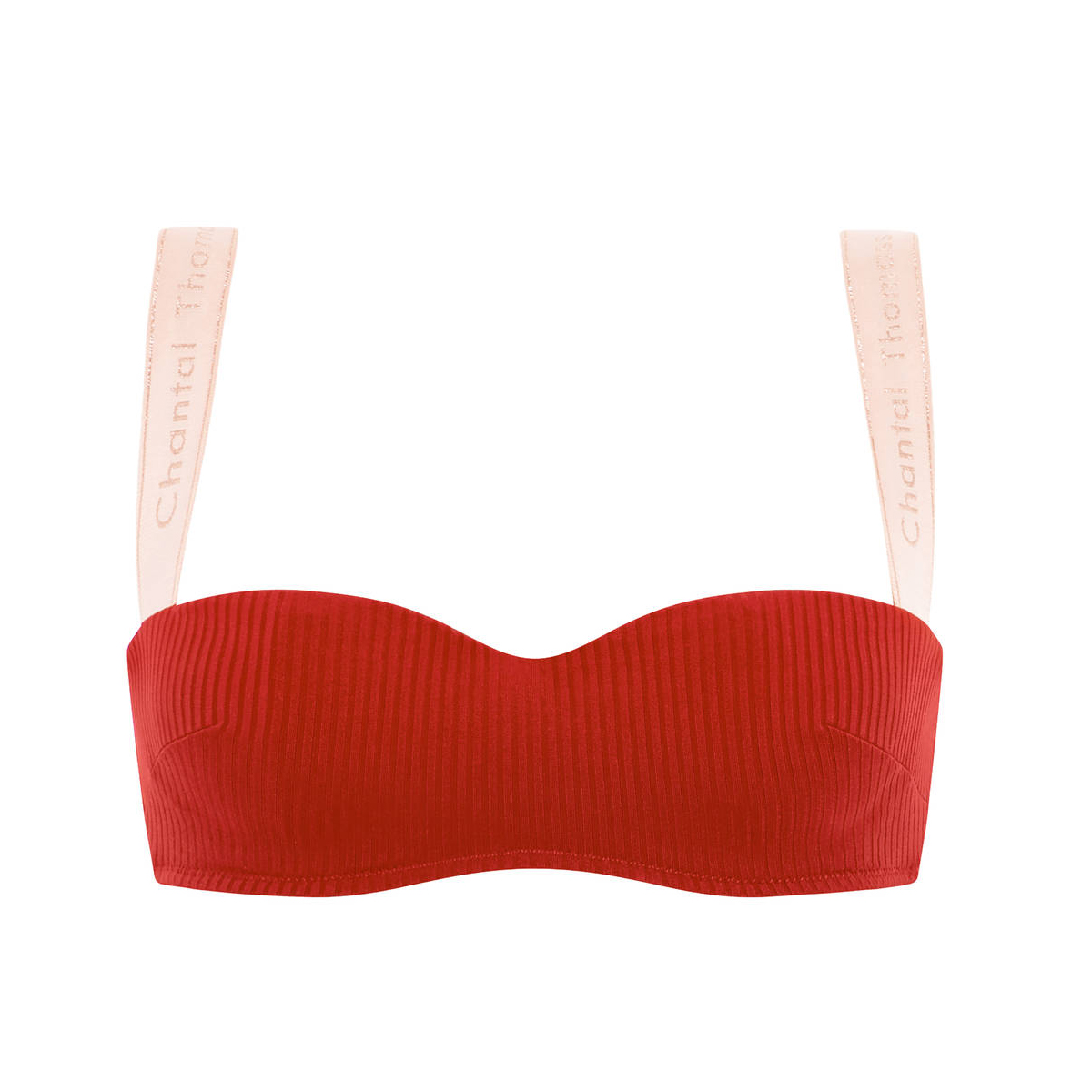 Бюстгальтер - бандо з м'якою відкритою формою чашок із прихованими кісточками. Чашки виконані з тканини в рубчик, з внутрішньої сторони дубльовані. Бретелі виготовлені з еластичної резинки з логотипом Chantal Thomass у спортивному стилі. Бретелі регулюються.