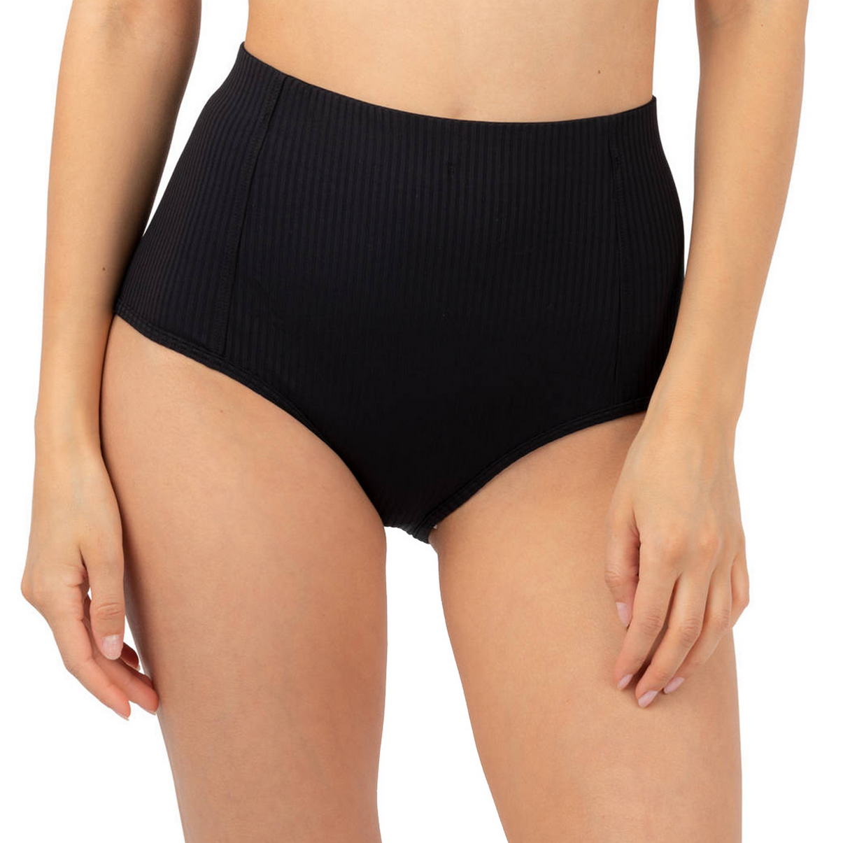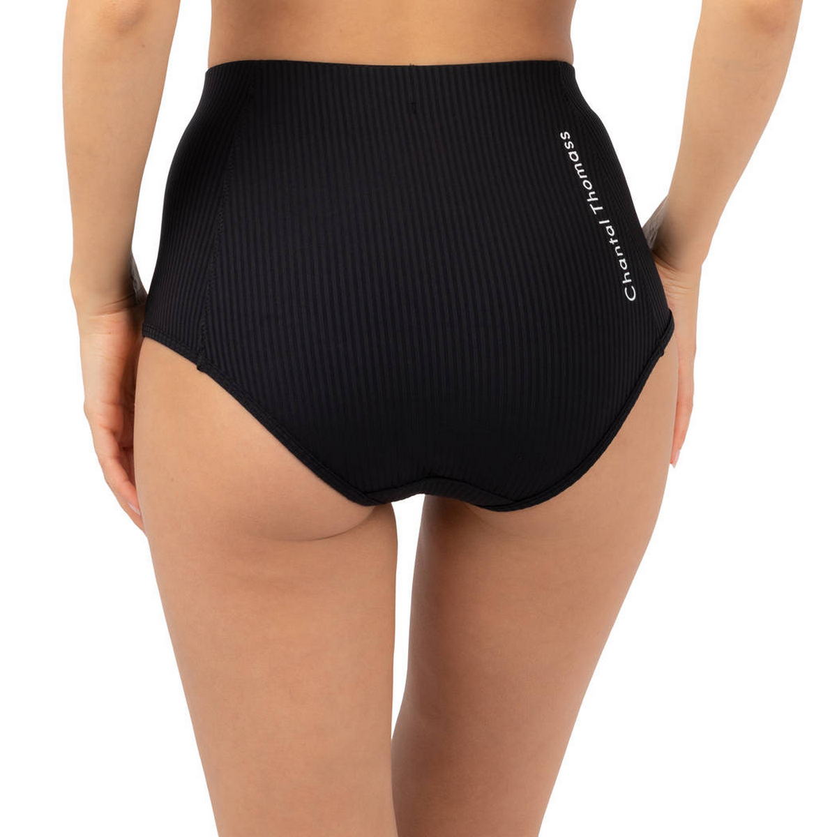 Труси з високою талією повністю виконані з матеріалу в рубчик. Схована всередині гумка у стилі спортивного поясу.