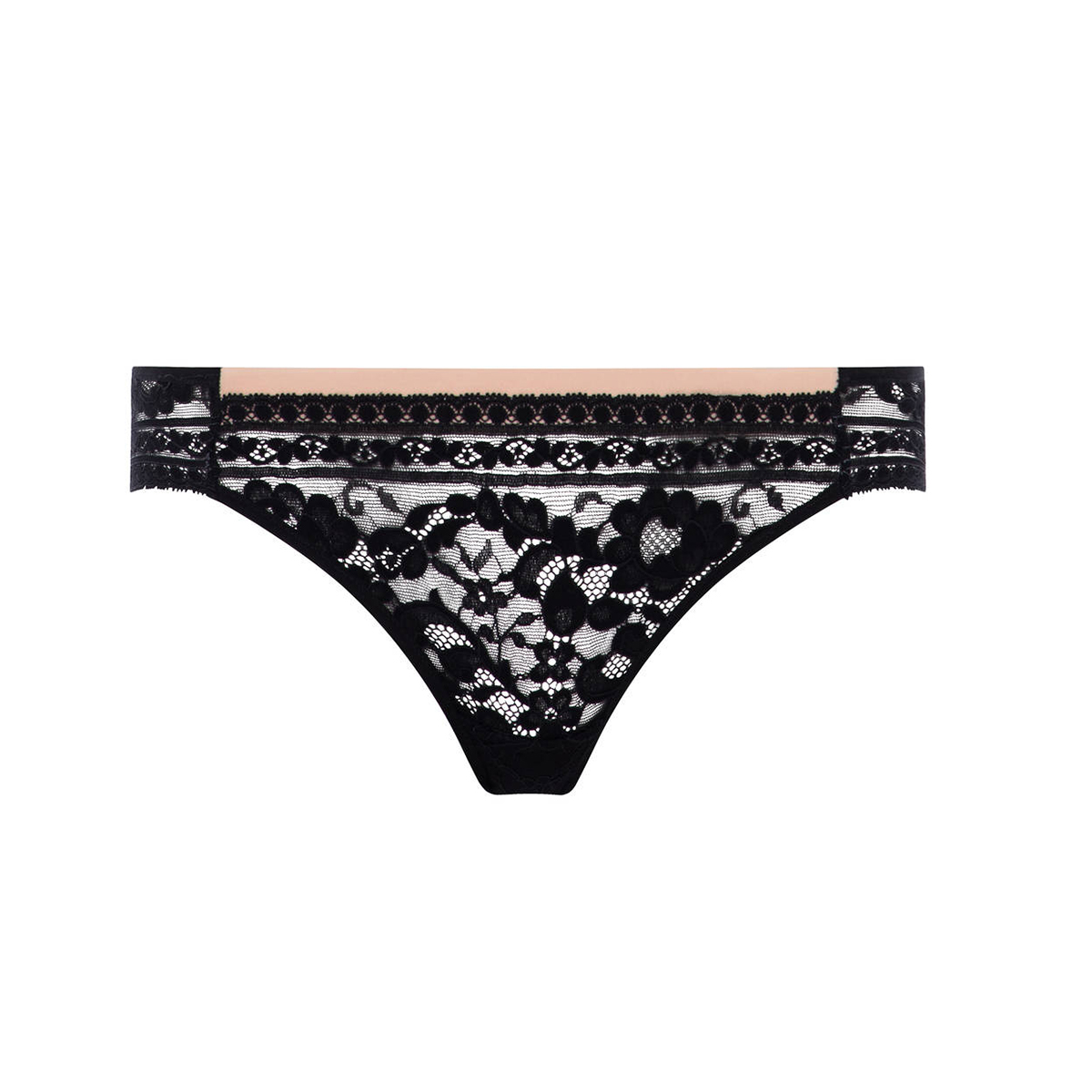 Труси-бікіні із заниженою посадкою. Повністю виготовлені з мережива з квітковим орнаментом.