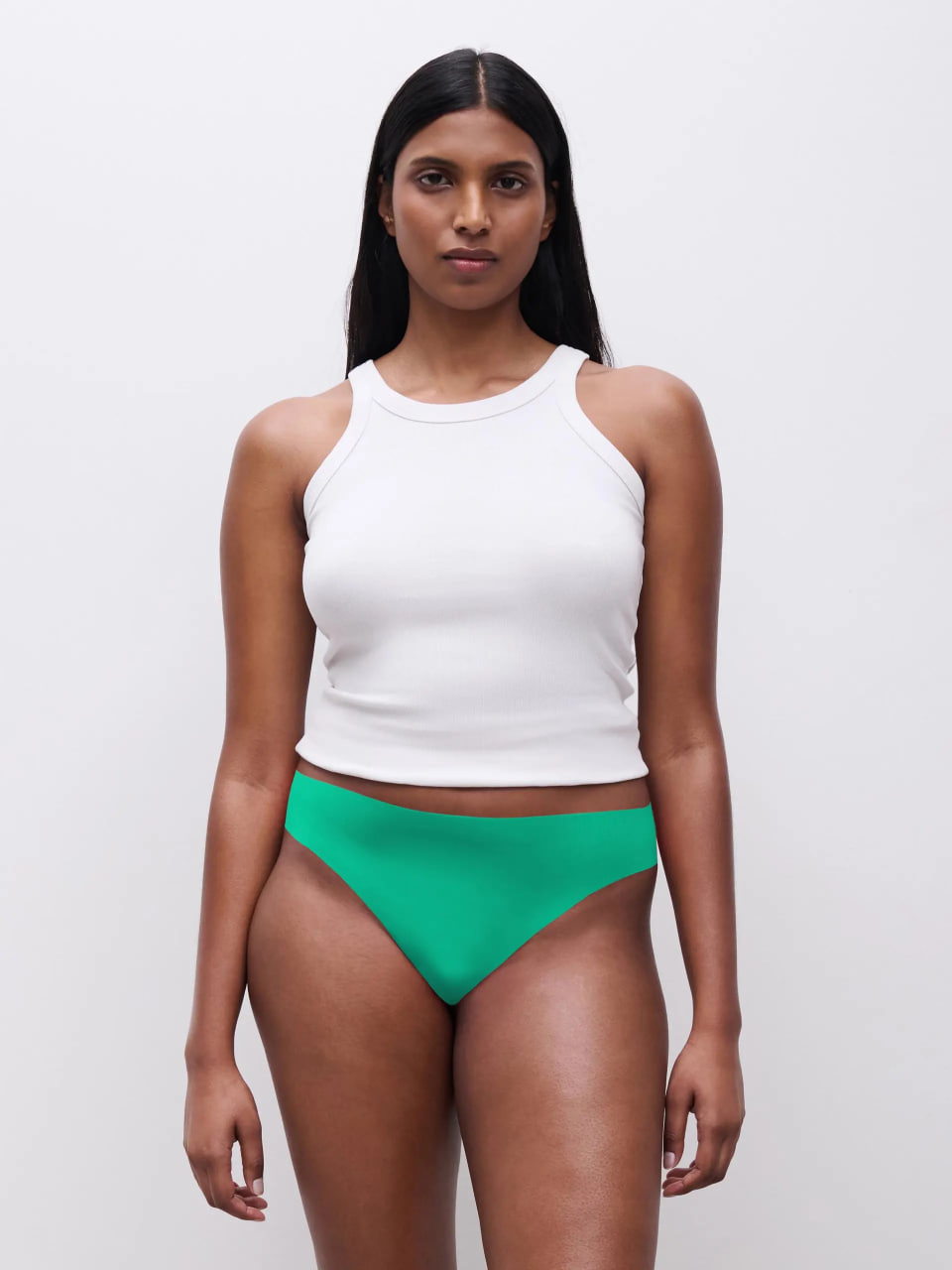 Труси-стрінги із середньо-зниженою посадкою. Виконані із приємного на дотик матеріалу. Задня панель максимально відкрита. Модель еластична, що дозволяє їй ідеально сидіти по фігурі, відсутність швів створює ефект невидимості під одягом.