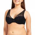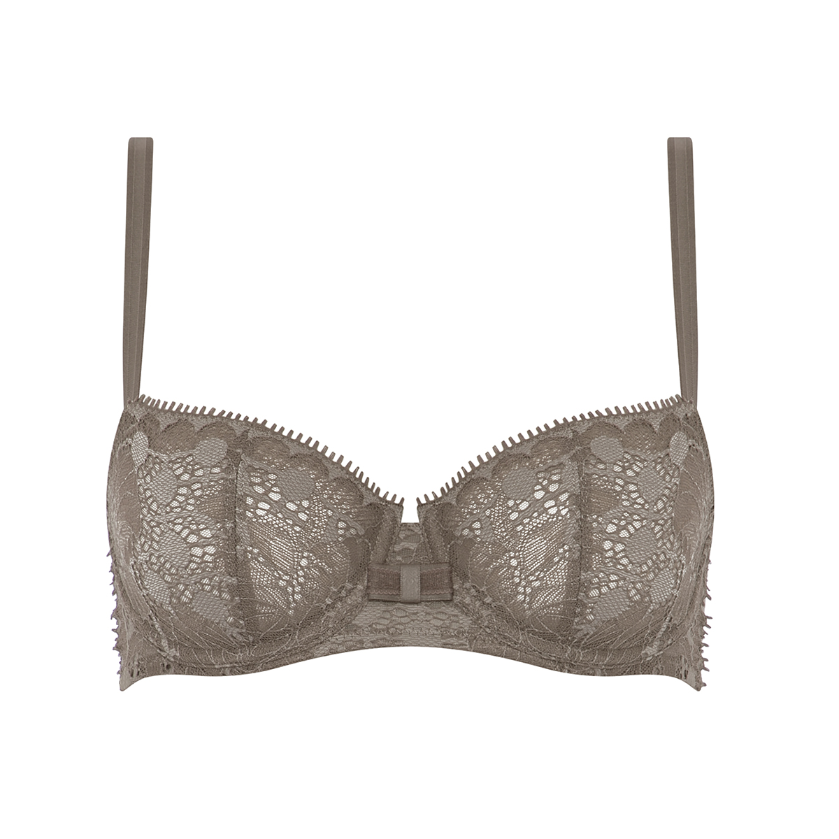 Бюстгальтер - балконет з м'якою відкритою формою чашок на кісточках. Чашки бюстгальтера виготовлені з мережива з квітковим орнаментом. На центральній панелі - бант. Область декольте доповнена декоративними зубчиками. Регульовані бретелі.