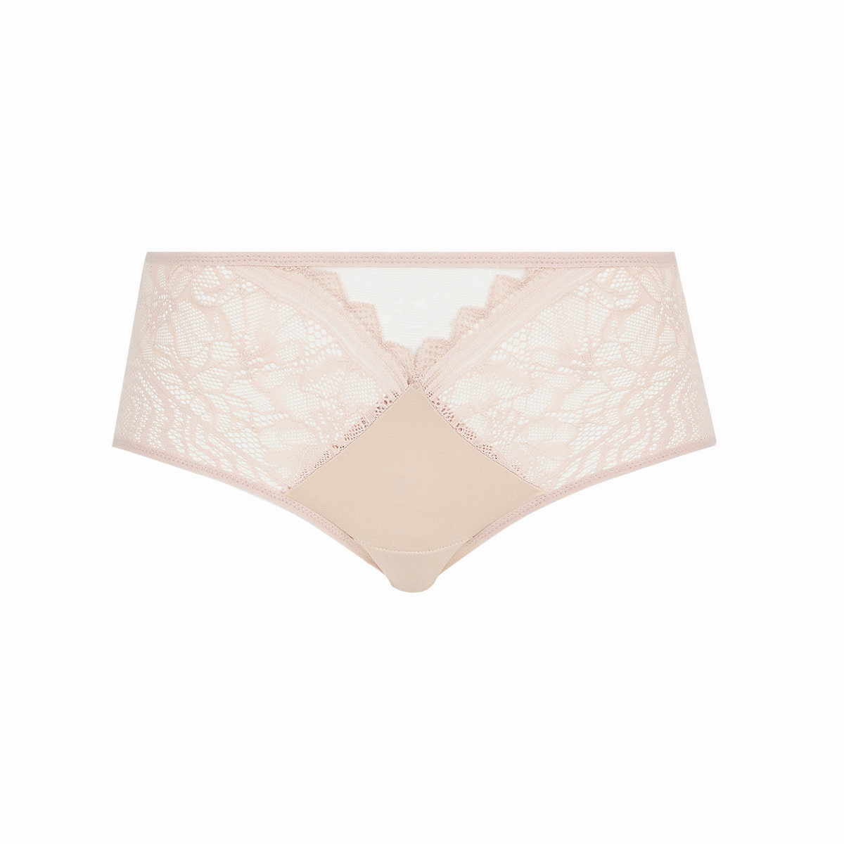 Труси - боксери із середньо - заниженою посадкою. Виконані з мікрофібри. На передній панелі вставки з мережива з квітковим орнаментом та тюлю.