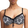 Бюстгальтер пуш ап з ущільненою формою чашок з подушками, що виймаються, і глибоким вирізом декольте. Чашки покриті м'якою мікрофіброю з малюнком набивним з оригінальним квітковим орнаментом. Центральна панель доповнена декоративними зав'язками. Еластичні бретели, що регулюються, які можна носити на плечах так і зав'язувати навколо шиї.