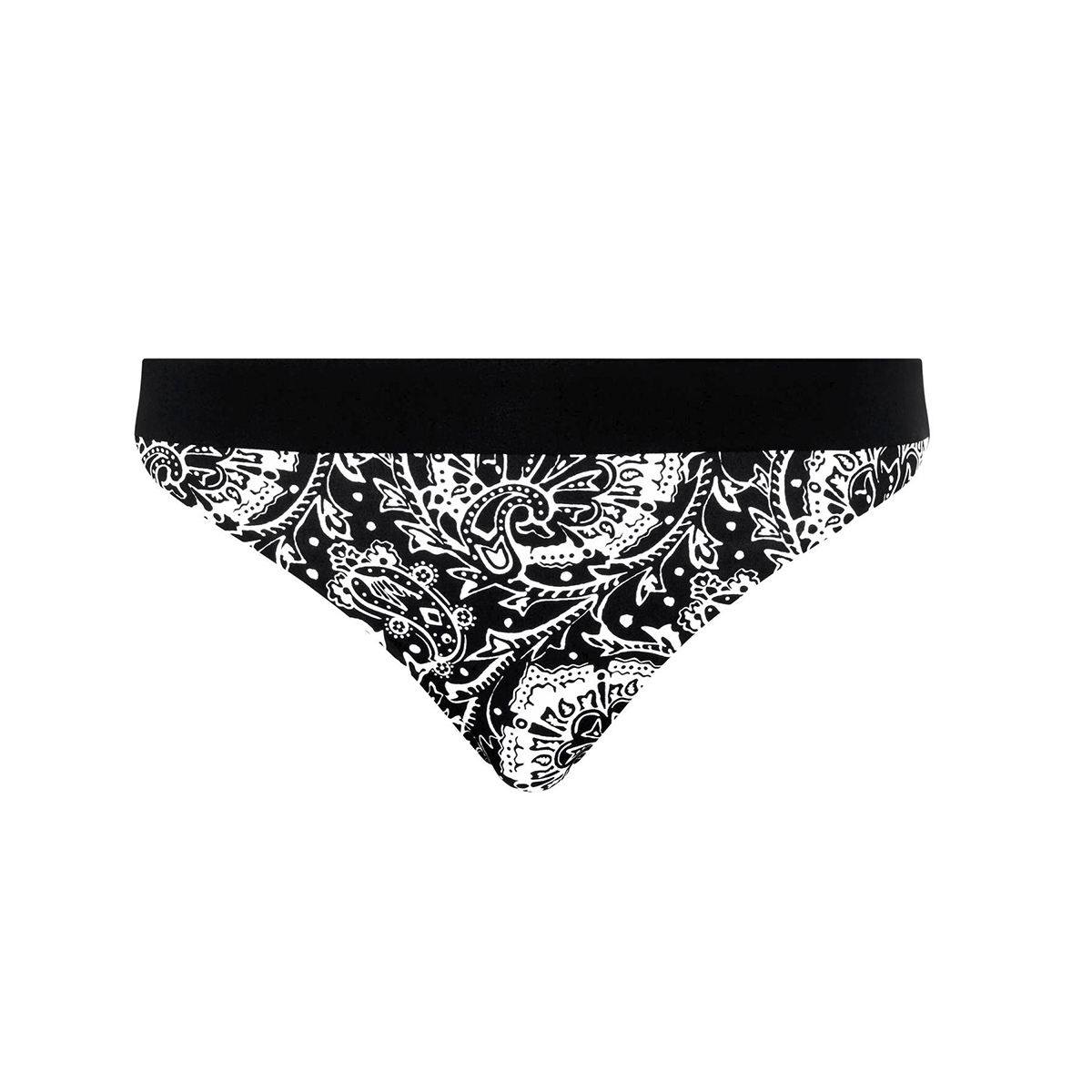Труси класичні із середньо-заниженою посадкою. Повністю виготовлені з м'якої мікрофібри з набивним малюнком з оригінальним квітковим орнаментом; повністю дубльовані для уникнення прозорості. Еластичний контрастний пояс.