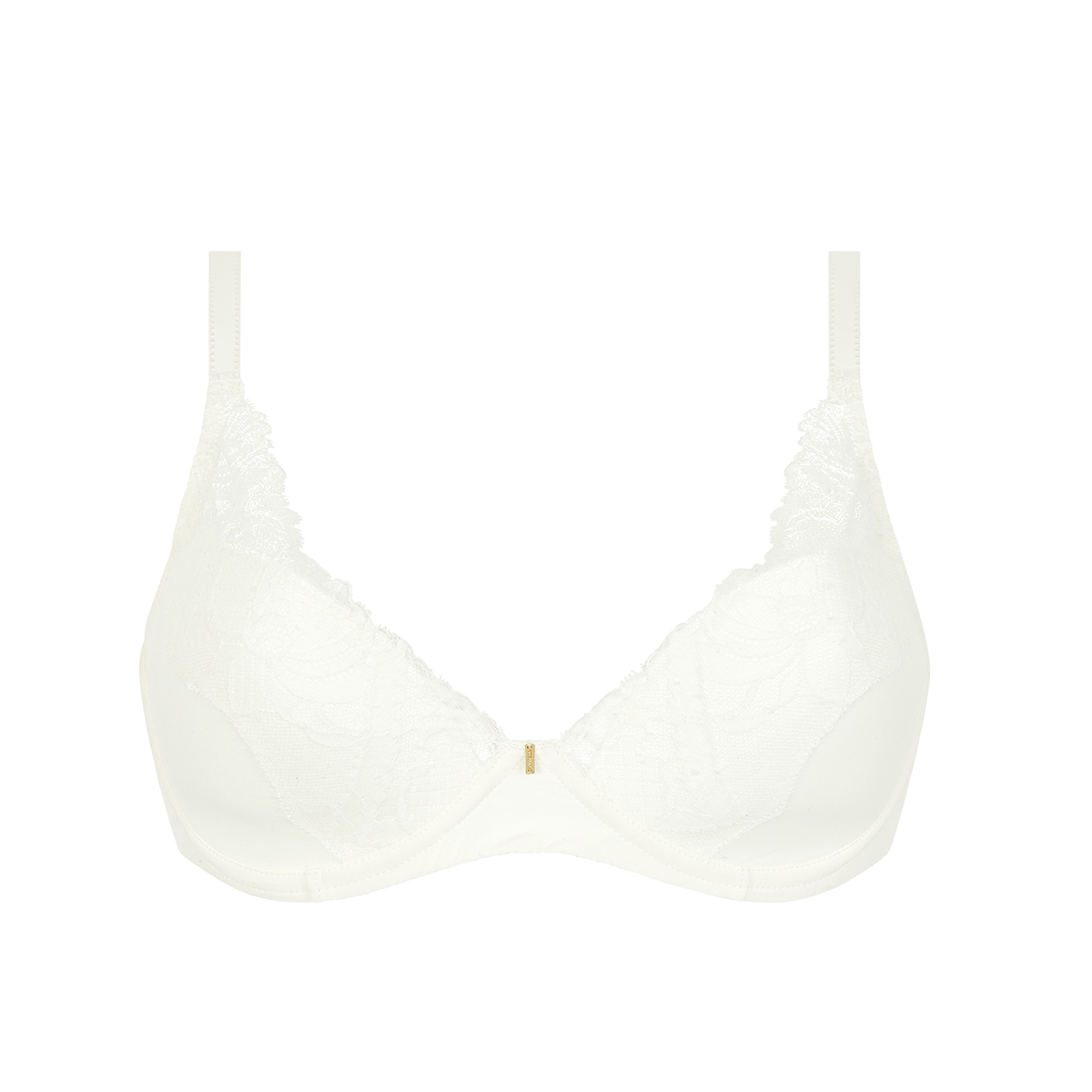 Бюстгальтер формований зі злегка ущільненою формою чашок на кісточках. Чашки виконані з мусу та покриті тюлем та вишивкою з квітковим орнаментом. Центральна панель виконана з мікрофібри та доповнена декоративним елементом із логотипом; задня панель - також із непрозорої мікрофібри. Глибока V-подібна форма декольте. Регульовані бретелі.