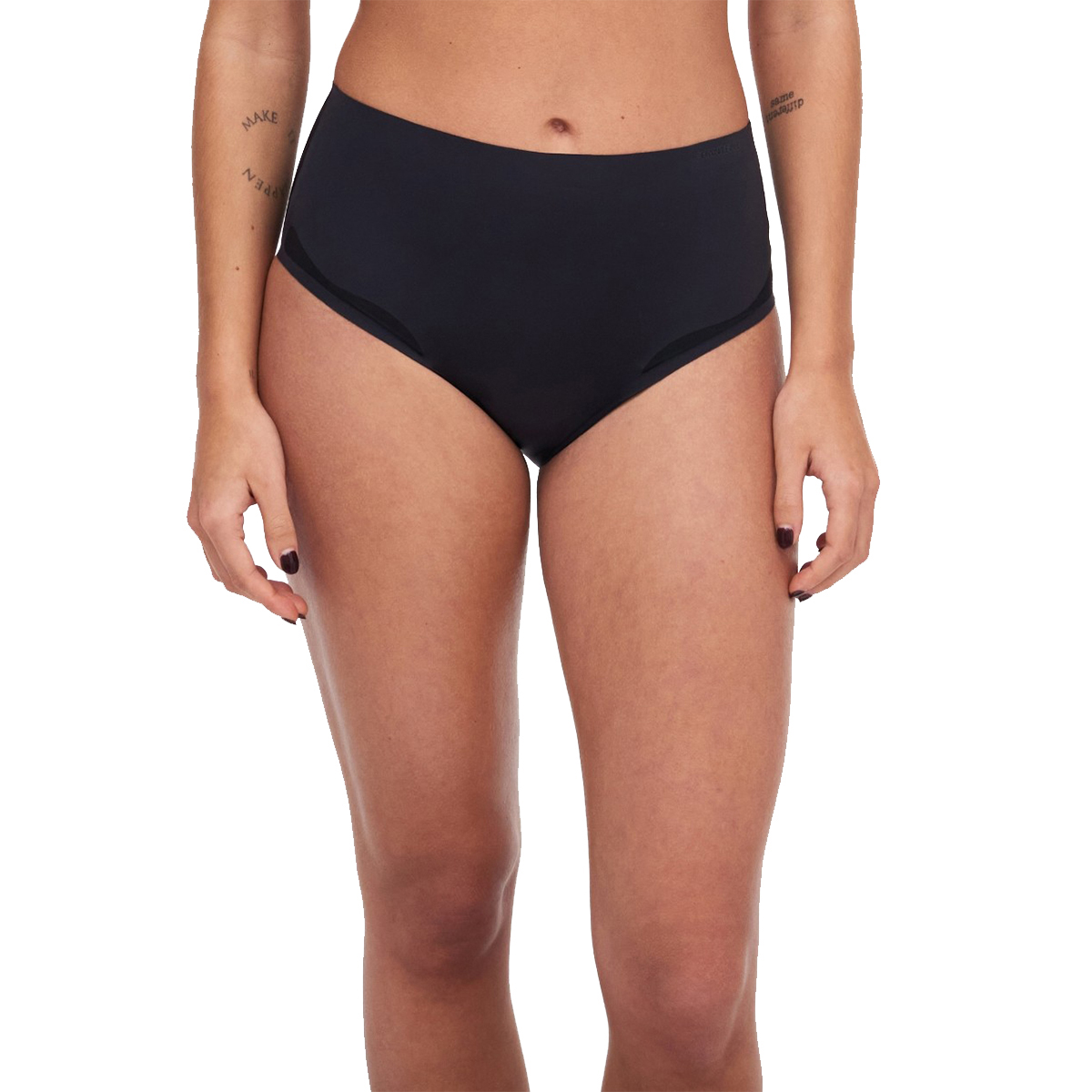 Безшовні труси з високою талією, виготовлені з мікрофібри. Передня панель складається з двох спаяних між собою шарів (сітки та мікрофібри), що надає їй трохи жорсткості, що у свою чергу дозволяє злегка візуально коригувати живіт. Задня панель також складається з двох неспаяних шарів мікрофібри, які забезпечують невидимий край.