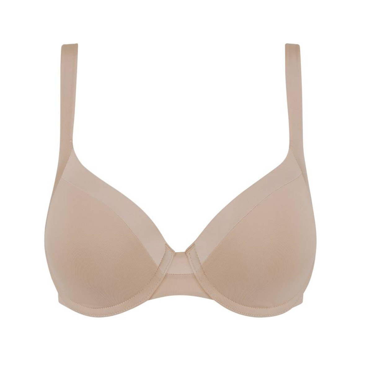 Бюстгальтер невидимий під одягом завдяки формованим чашкам та плоскій обробці. Ціліснокрійна бретель із спеціальним наповнювачем забезпечує хорошу підтримку без тиску. Овальна спинка зменшує навантаження на хребет. Чашки з потрійною зоною підтримки ідеально формують груди.