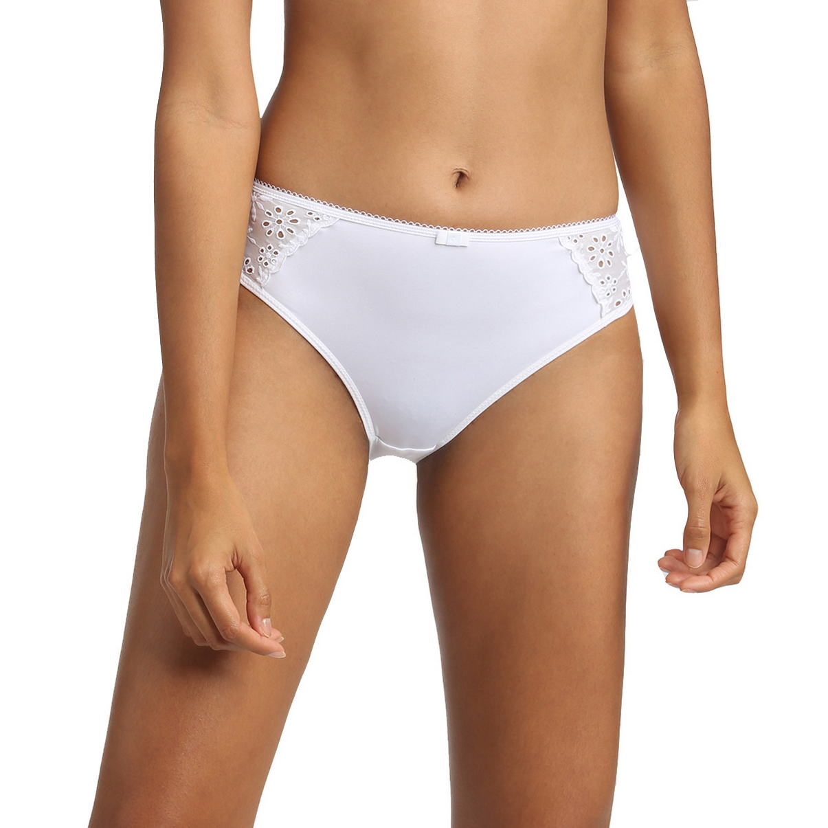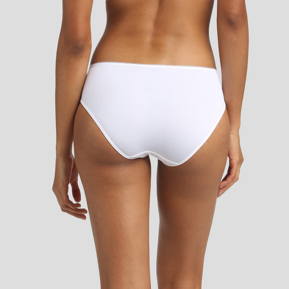 Класичні труси із середньо-завищеною посадкою. Передня та задня панелі повністю виконані з "невагомої" мікрофібри. Верхній край декорований. Бічні панелі - з прошви.