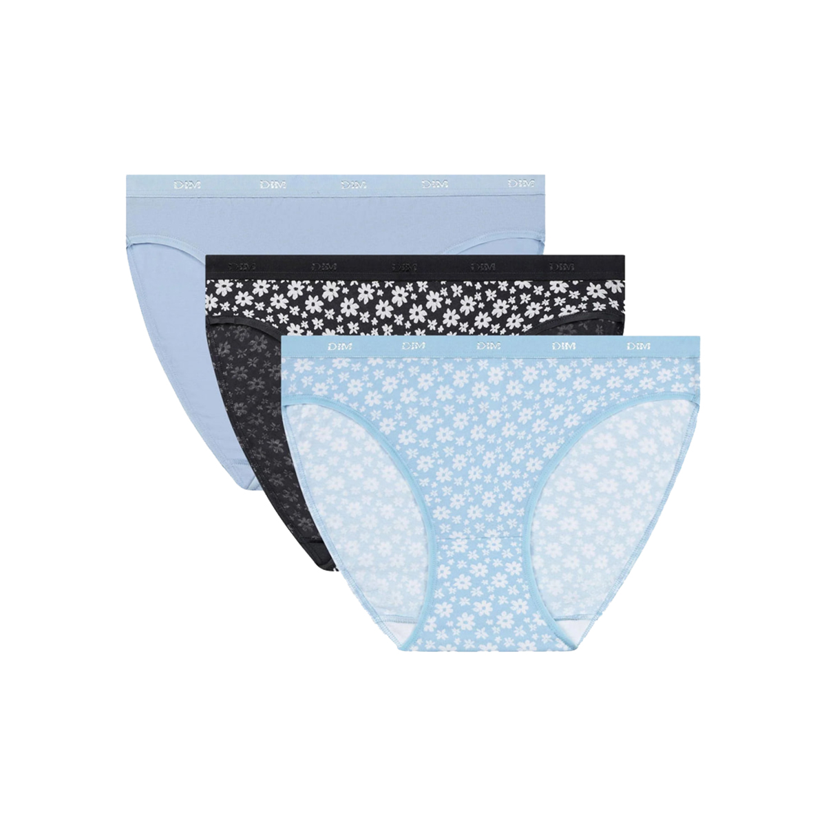 Набір з трьох трусиків різних кольорів. Ніжна бавовна та м'який комфортний пояс із логотипом "Dim". Плоска еластична обробка. Комфорт протягом дня. Прекрасний подарунок для себе та своїх близьких.