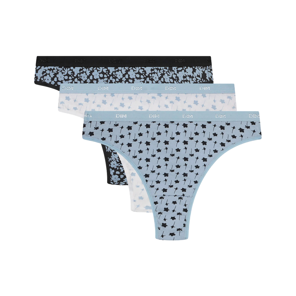 Набір з трьох трусиків-стрінгів різних кольорів. Ніжна бавовна та м'який комфортний пояс з логотипом "Dim". Пласка еластична обробка. Комфорт протягом дня. Прекрасний подарунок для себе та своїх близьких.
