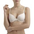 Бюстгальтер формований зі злегка ущільненою трикутною формою чашок без кісточок. Чашки покриті гладкою еластичною мікрофіброю. Безшовні бічні панелі також виконані з гладкої еластичної мікрофібри для максимальної невидимості під одягом. Регульовані бретелі можна перестебнути хрест – на – хрест.