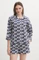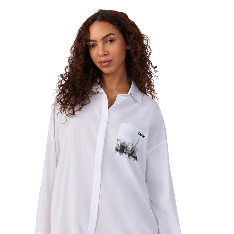 Сорочка на ґудзиках вільного крою, виготовлена з легкої та повітряної тканини, забезпечує повну свободу рухів. Довгі рукави зі спущеною лінією плеча створюють розслаблений силует і не сковують тіло. Модель доповнена трьома практичними кишенями — однією нагрудною та двома бічними, що робить її не тільки стильною, а й функціональною.