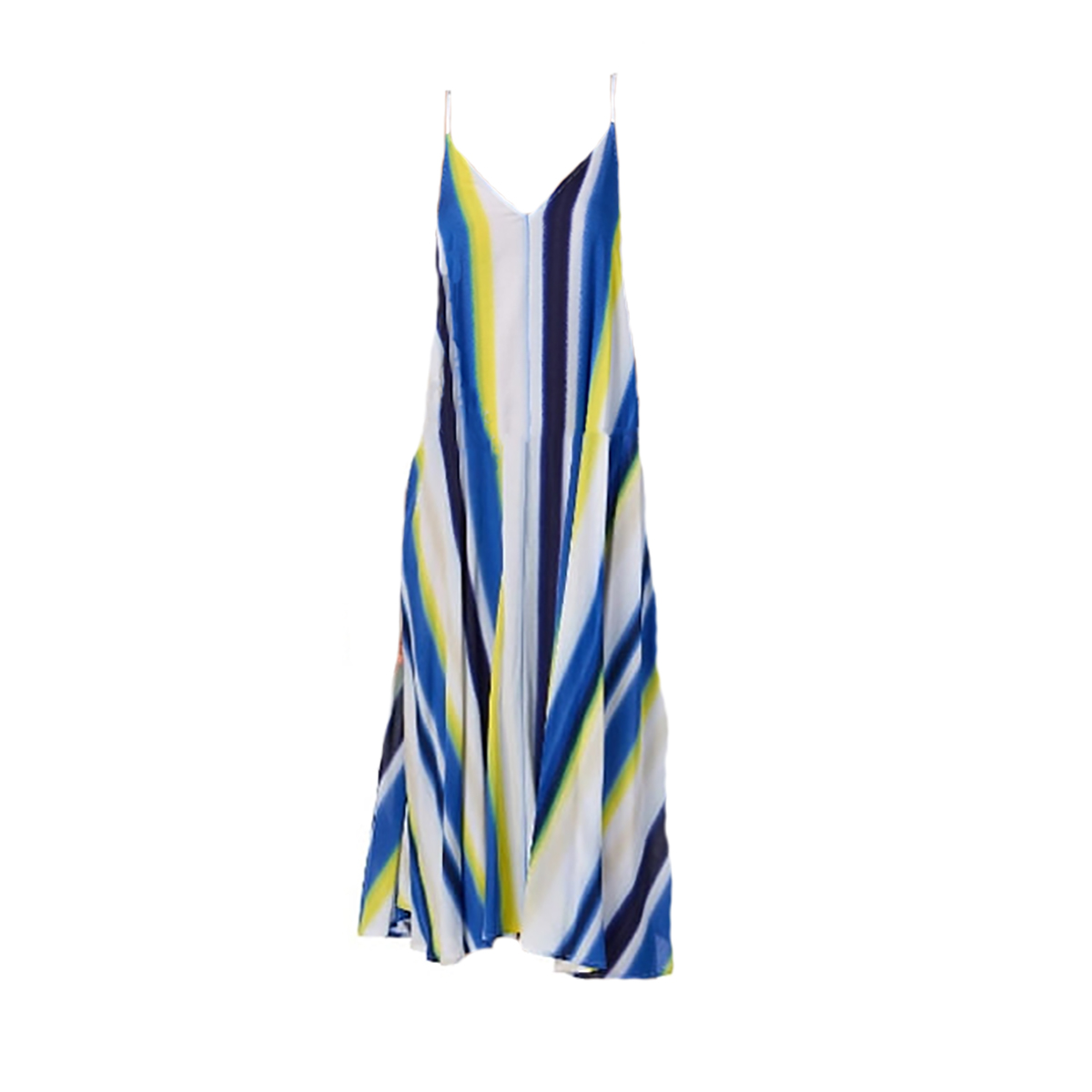 Довга комбінація розклешеного фасону вільного крою, виконана з надзвичайно комфортного матеріалу, що дихає, який приємно відчувається на тілі. Модель має елегантний V-подібний виріз і тонкі регульовані бретелі, що не відстібаються. Практичні накладні кишені на бічних панелях надають образу повсякденної функціональності.