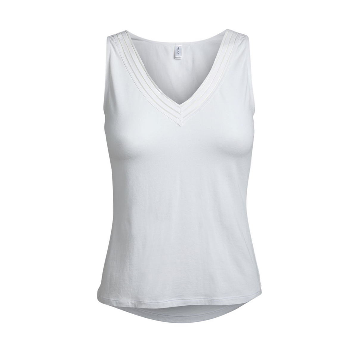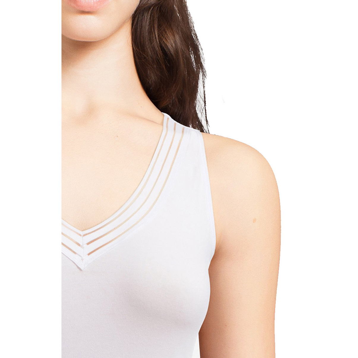Майка на тонких бретелях, що регулюються. Верхній край передньої панелі декорований. Виконана з м'якої бавовни високої якості.