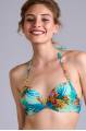 Бюстгальтер-балконет на кісточках - це гармонія витонченості та впевненості. Вбудовані підкладки делікатно піднімають та формують груди, створюючи спокусливий силует. Тонкі бретелі, прикрашені золотими ланцюжками біля основи, елегантно зав'язуються на шиї, додаючи образу нотку гламуру. Для додаткового комфорту передбачені класичні знімні бретелі, що регулюються. Завершує модель застібка на спинці – функціональна та акуратна, як фінальний штрих до досконалості.