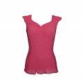 Майка - топ виконана з комбінованого трикотажу. Передня частина виробу декорована вставкою із контрастним принтом. Низ виробу – м'який волан (оверлок).