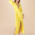 Довга багатопозиційна спідниця-парео, відкрита на передній панелі. Виконана з еластичної легкої тканини, що струїться по тілу, підзібраної навколо великого срібного кільця. Завдяки продуманому дизайну модель можна носити в різних варіаціях, створюючи різні жіночні та стильні образи: як елегантну спідницю, зав'язуючи бретелі навколо талії, або як ефектну пляжну сукню, перекинувши бретелі через плечі.