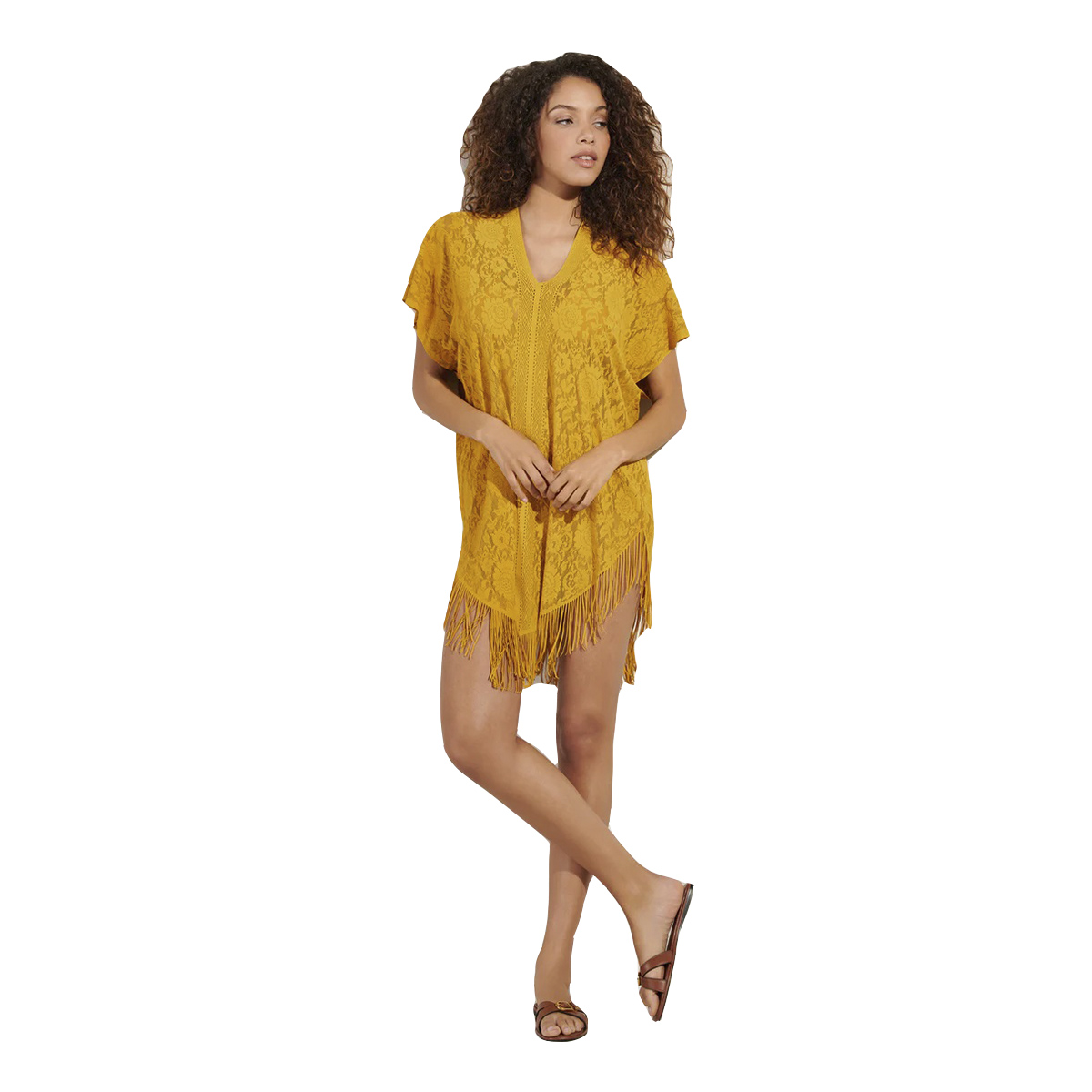 Розкішна та жіночна пончо-туніка Jesse. Виконана з "невагомого" гіпюру та декорована бахромою, вона змусить Вас відчути себе Богинею.