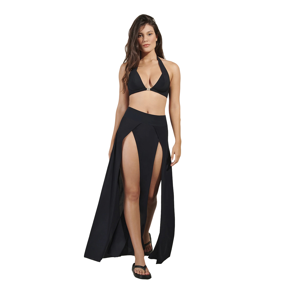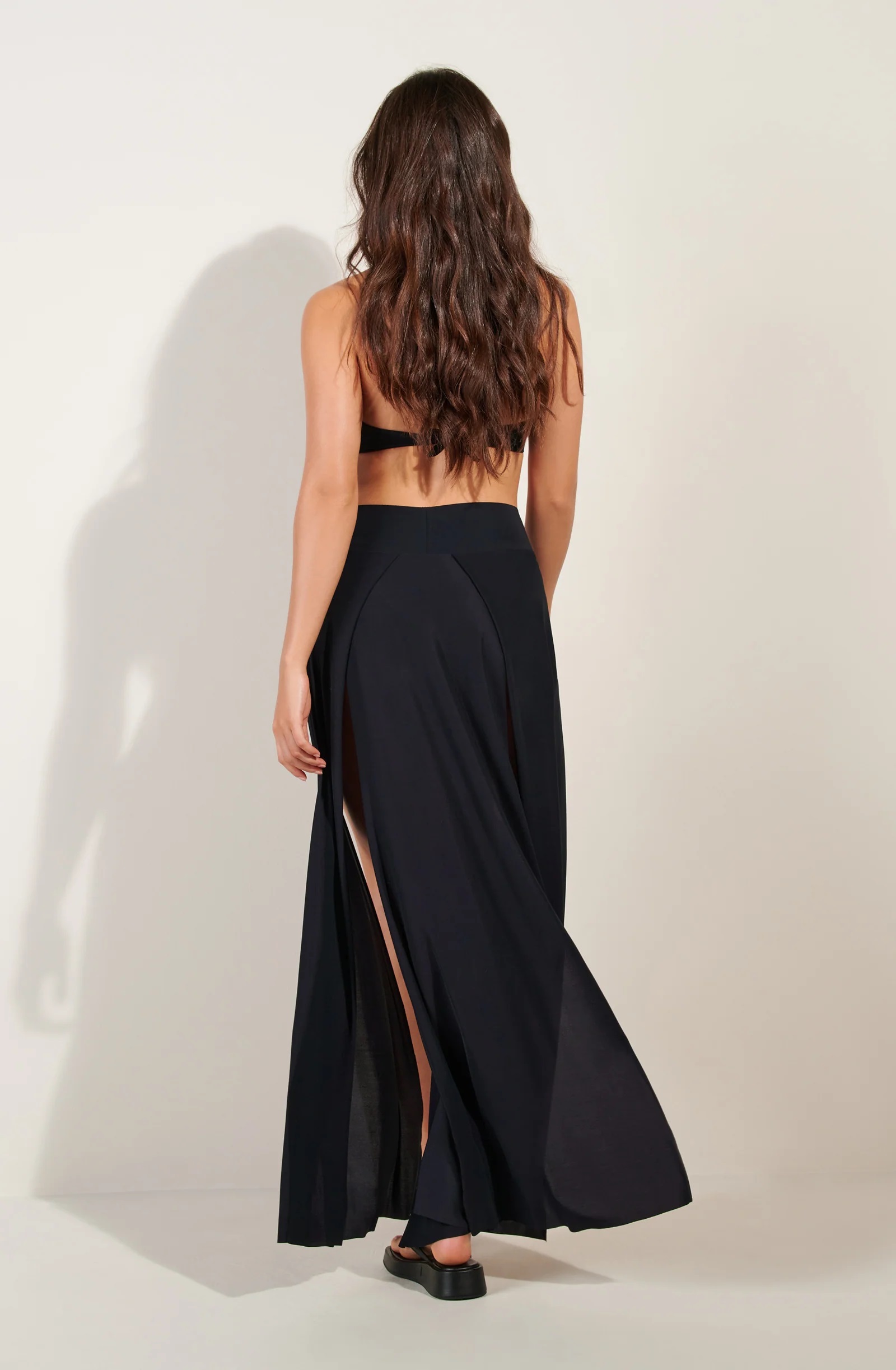 Довга, дуже жіночна спідниця, в стилі кльош, з відвертими розрізами спереду та ззаду. Виконана із напівпрозорої вуалі. Широкий безшовний еластичний пояс.