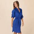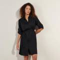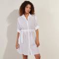 Коротка легка сукня-сорочка вільного крою, прикрашена витонченою англійською вишивкою, поєднує в собі елегантність та комфорт. Модель на ґудзиках із класичним коміром та довгими рукавами на резинці. Знімний пояс дозволяє підкреслити талію, створюючи витончений силует.