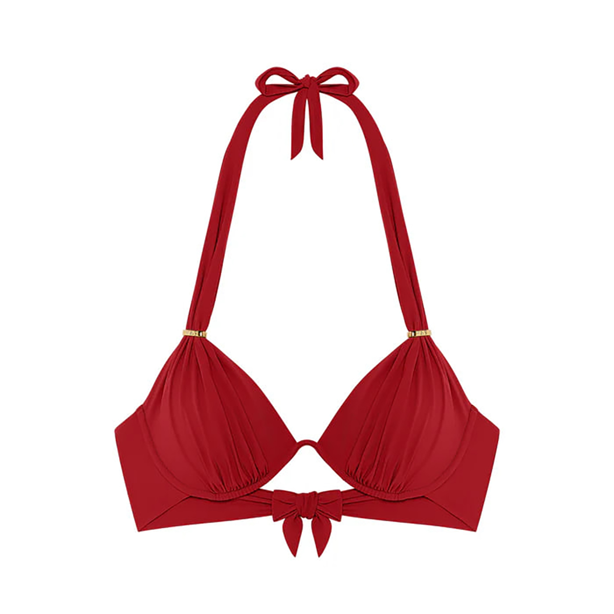 Бюстгальтер з м'якою трикутною формою чашок на монокістці. Чашки дубльовані із внутрішньої сторони для надання необхідної підтримки. Глибоке декольте. Зав'язується навколо шиї та на спині.