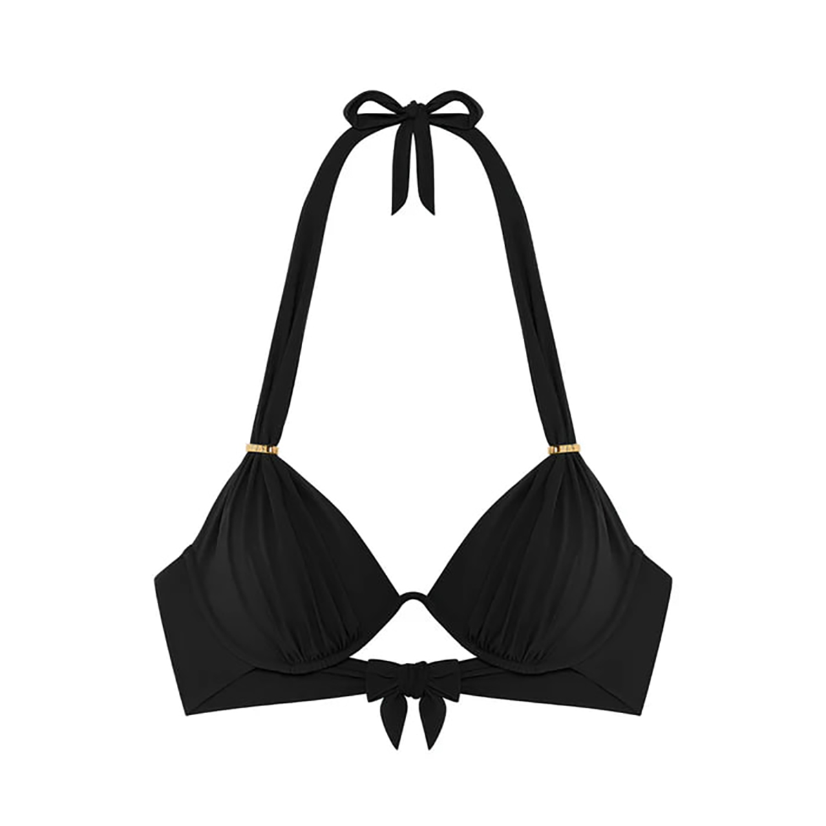 Бюстгальтер з м'якою трикутною формою чашок на монокістці. Чашки дубльовані із внутрішньої сторони для надання необхідної підтримки. Глибоке декольте. Зав'язується навколо шиї та на спині.