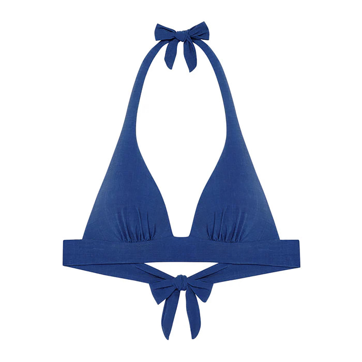 Бюстгальтер пуш ап з трикутною формою чашок без кісточок, з подушками, що виймаються. Біля основи чашок тканина злегка призібрана. Широкі бретелі зав'язуються довкола шиї.