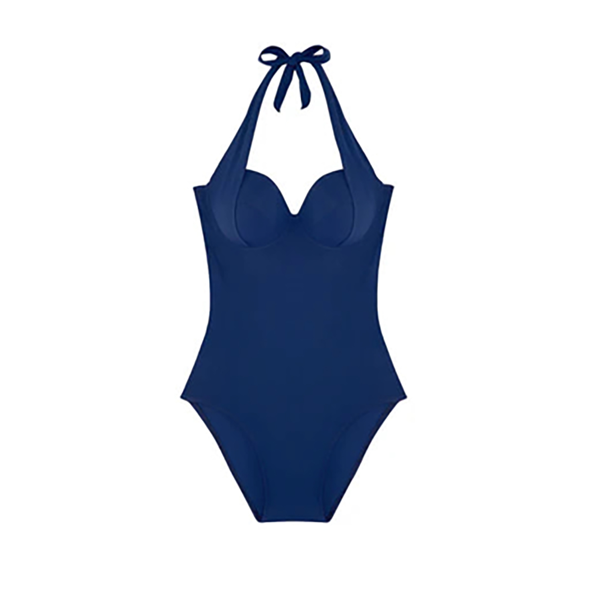 Гламурна модель купальника в стилі Ретро, яка ідеально підійде володаркам пишних форм. Цільний купальник з ущільненою чашкою на кісточках. Широкі бретелі зав'язуються довкола шиї. Передня та задня панелі – закриті.