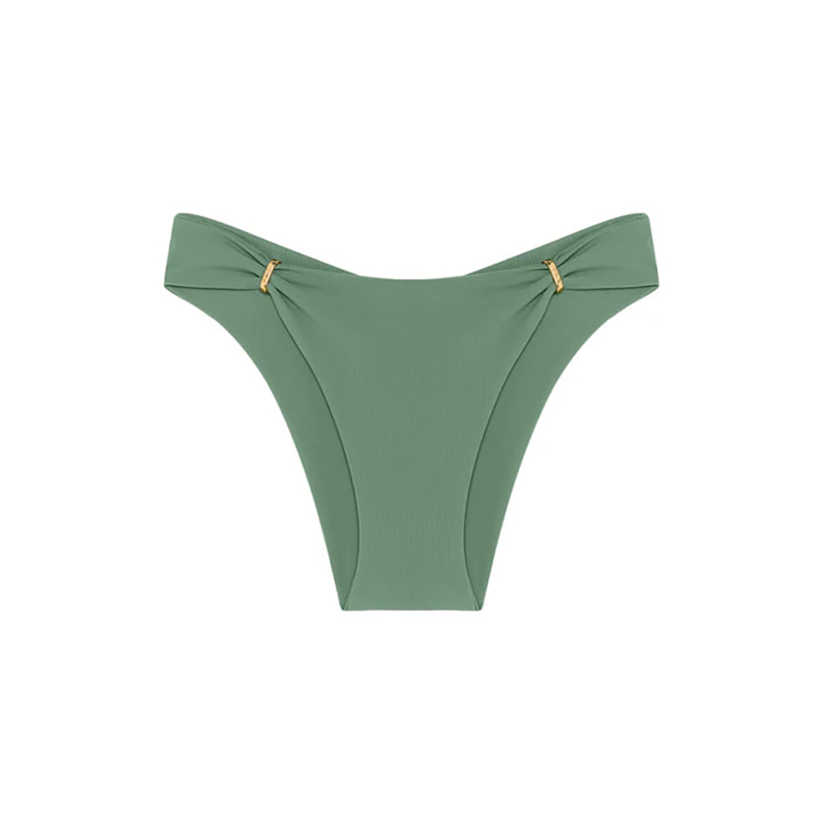 Труси - бікіні, які можна трансформувати в стрінги за допомогою золотистих деталей, що "ковзають"; із середньо - заниженою посадкою.
