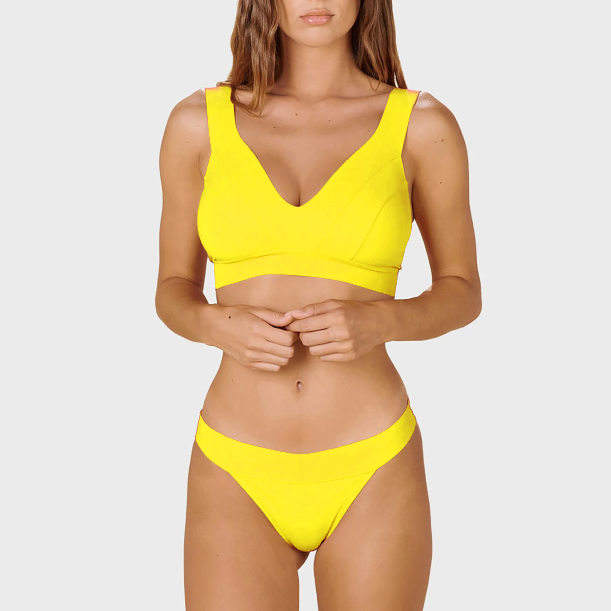 Труси-бікіні з необробленим краєм створюють ефект другої шкіри, м'яко повторюючи вигини тіла. Ущільнений еластичний пояс забезпечує комфортну посадку та надійну фіксацію.