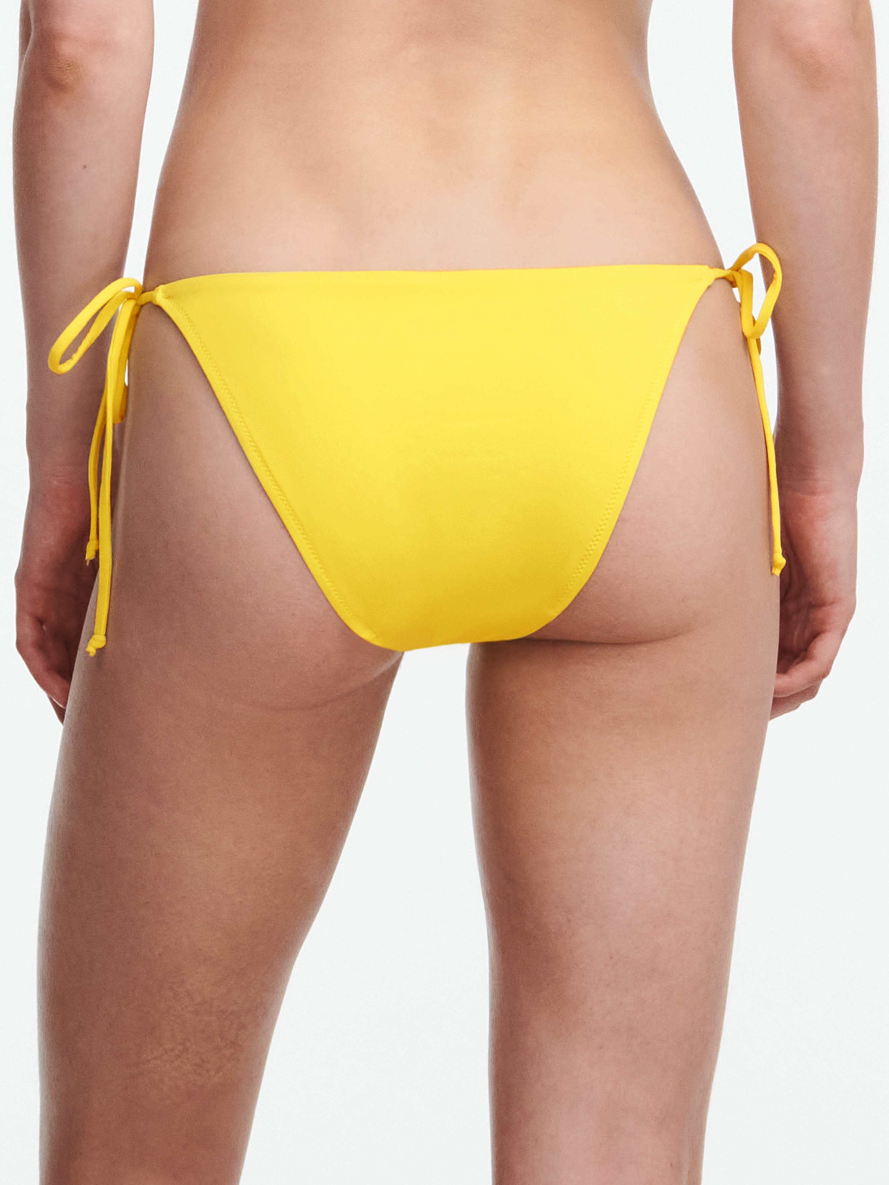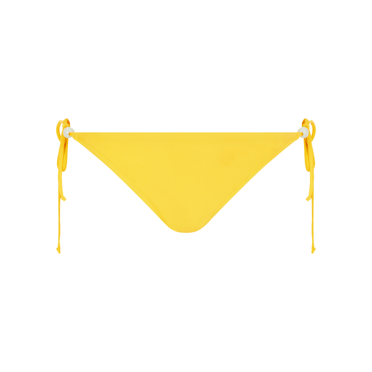 Труси – бікіні із заниженою посадкою. Бокові панелі - на зав'язках, що допомагає підкоригувати посадку. З боків доповнені декоративними перлинами.