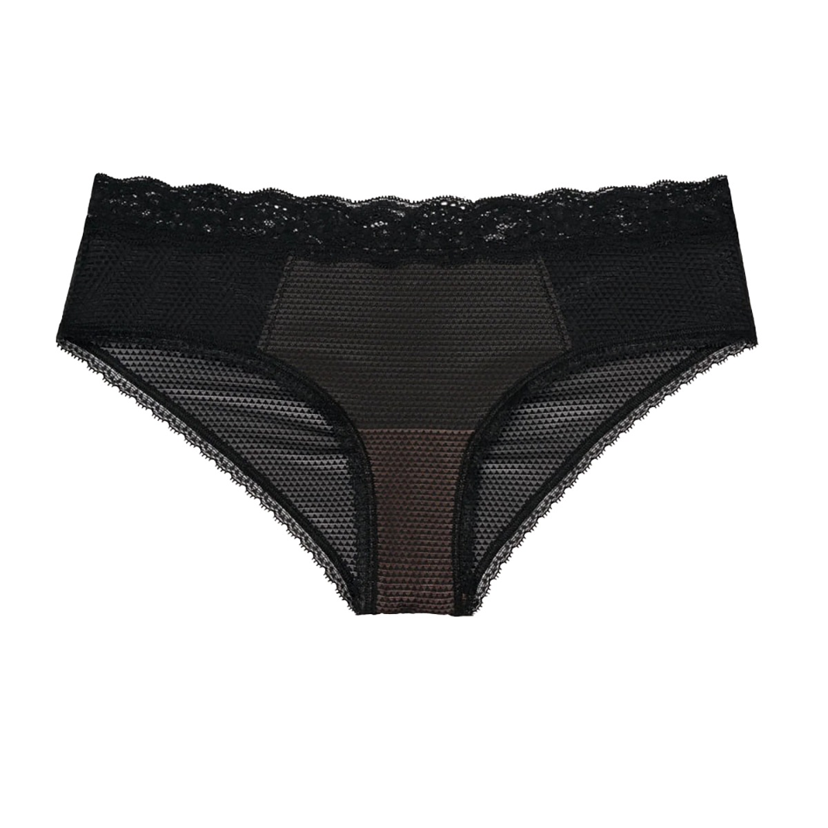 Труси-боксери із заниженою посадкою, виготовлені з ніжного прозорого тюлю. Верхній та нижній краї прикрашені вставками із витонченого мережива з квітковим орнаментом. На задній панелі модель злегка зібрана, що надає образу додаткової спокусливості.