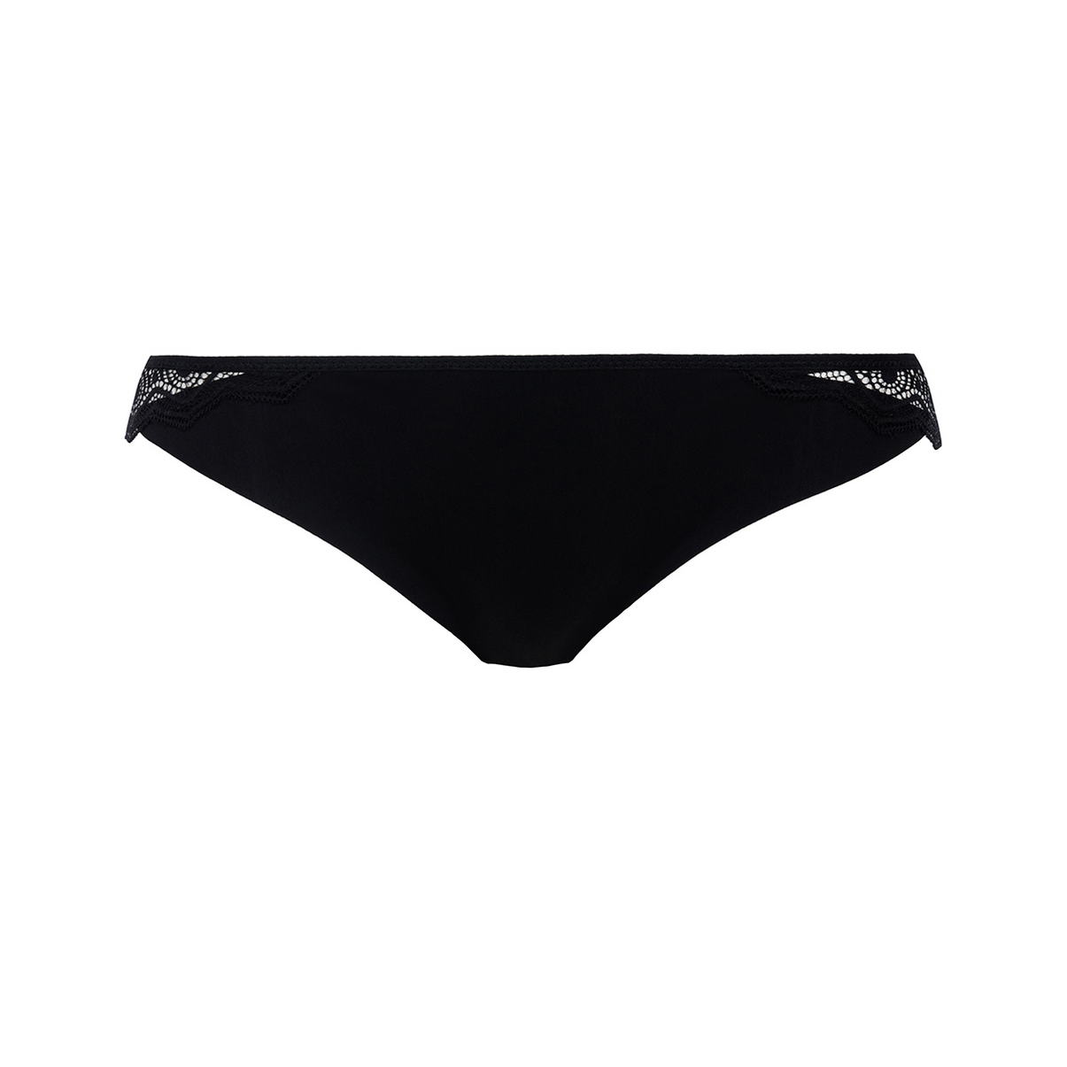 Труси-стрінги із середньо-заниженою посадкою. Передня панель виконана з мікрофібри та декорована вставками з мережива, задня панель – з графічного мережива.