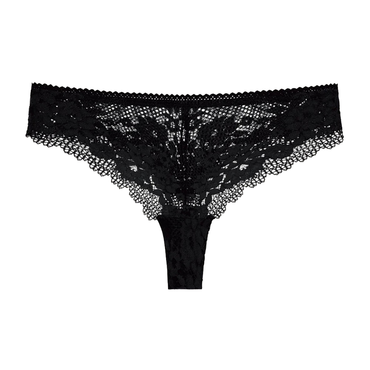 Труси-стрінги із середньо-заниженою посадкою, виконані з ніжного мережива з романтичним квітковим орнаментом, що підкреслює жіночність та легкість образу.