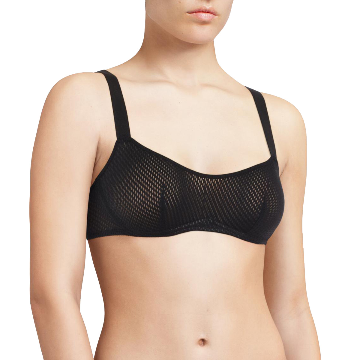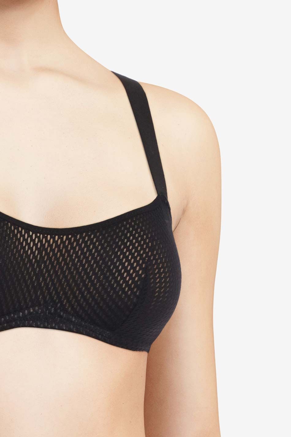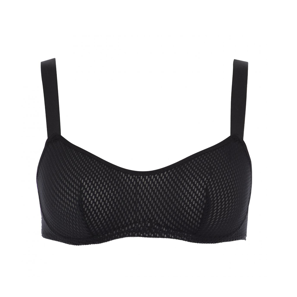Бюстгальтер - балконет з м'якою відкритою формою чашок на кісточках. Чашки виконані із сітчастого матеріалу. Регульовані бретелі.