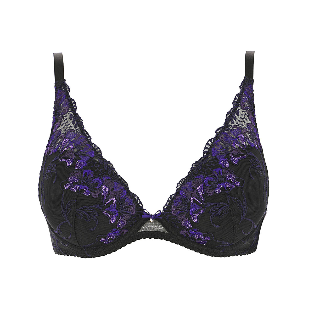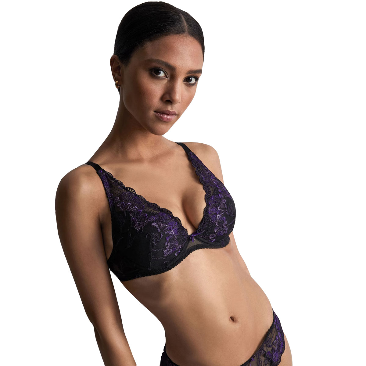Линия Fleur de Toi от Aubade обольщает своей роскошной контрастной мерцающей вышивкой с цветочным орнаментом и декоративными зубчиками, которые украшают бретели и область декольте.