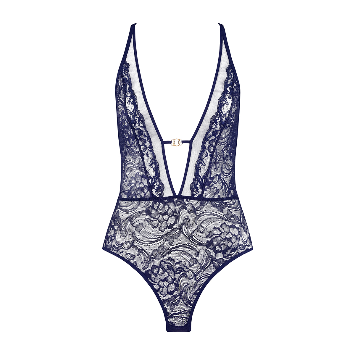 Боди с глубоким V - образным вырезом декольте. Без чашек и без косточек. Выполнен из тюля. Украшен элегантным французским кружевом, между чашек расположено золотое украшение из замака. Боди с "американской" спинкой с регулируемыми эластичными ремнями.