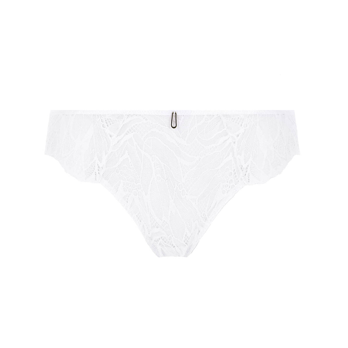 Классические трусы со средне-заниженной посадкой , практически полностью, выполнены из роскошного кружева с экзотическим цветочным орнаментом. Задняя панель дополнена декоративной металлической деталью.