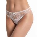 Трусы - бикини с заниженной посадкой. Передняя панель выполнена из тюля в горошек по бокам дополнена вставками из расшитого тюля; задняя - из расшитого тюля и дополнена вставкой из тюля в горошек.