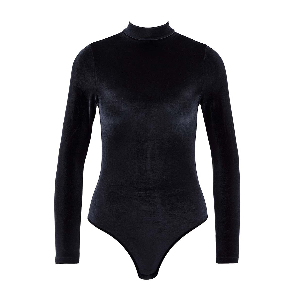 Боди с высоким воротом и длинными рукавами. Выполнен полностью из бархата. Открытая сексульная спинка демонстрирует обнаженную кожу вплоть до поясницы.