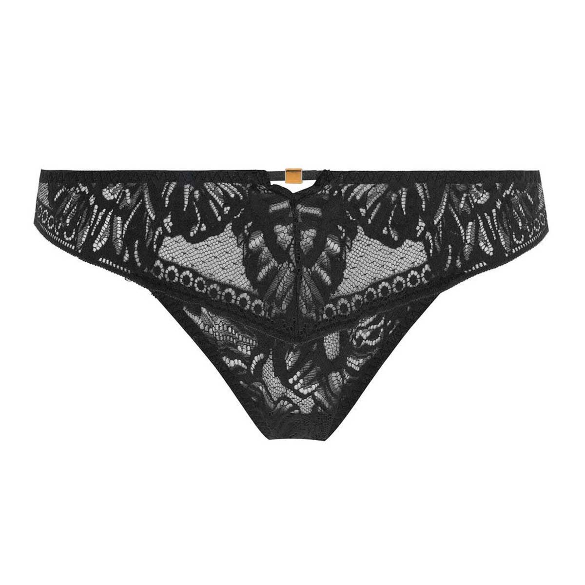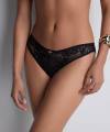Трусы-бикини со средне-заниженной посадкой — воплощение итальянской элегантности и чувственного дизайна. Модель выполнена из роскошного цветочного жаккардового кружева и полупрозрачной сетки, изящно подчеркивающей линии бёдер и создающей утончённый, притягательный силуэт. Позолоченные украшения из замака добавляют акцент роскоши. На задней панели внимание привлекает изящный вырез с декоративной шнуровкой.