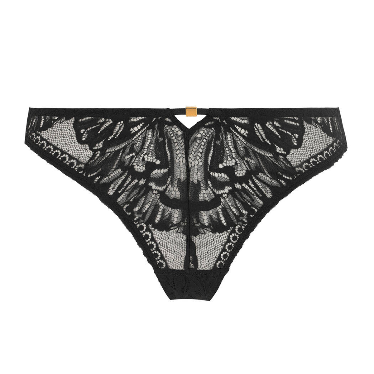 Трусы-стринги со слегка заниженной посадкой. Выполнены из изысканного итальянского жаккардового кружева с цветочным орнаментом, они подчёркивают нежность силуэта и очаровывают своей фактурной утончённостью. Позолоченные украшения из замака добавляют блеска, а декоративные шнурки на задней панели создают интригующий акцент, превращая эту модель в настоящую ювелирную фантазию.