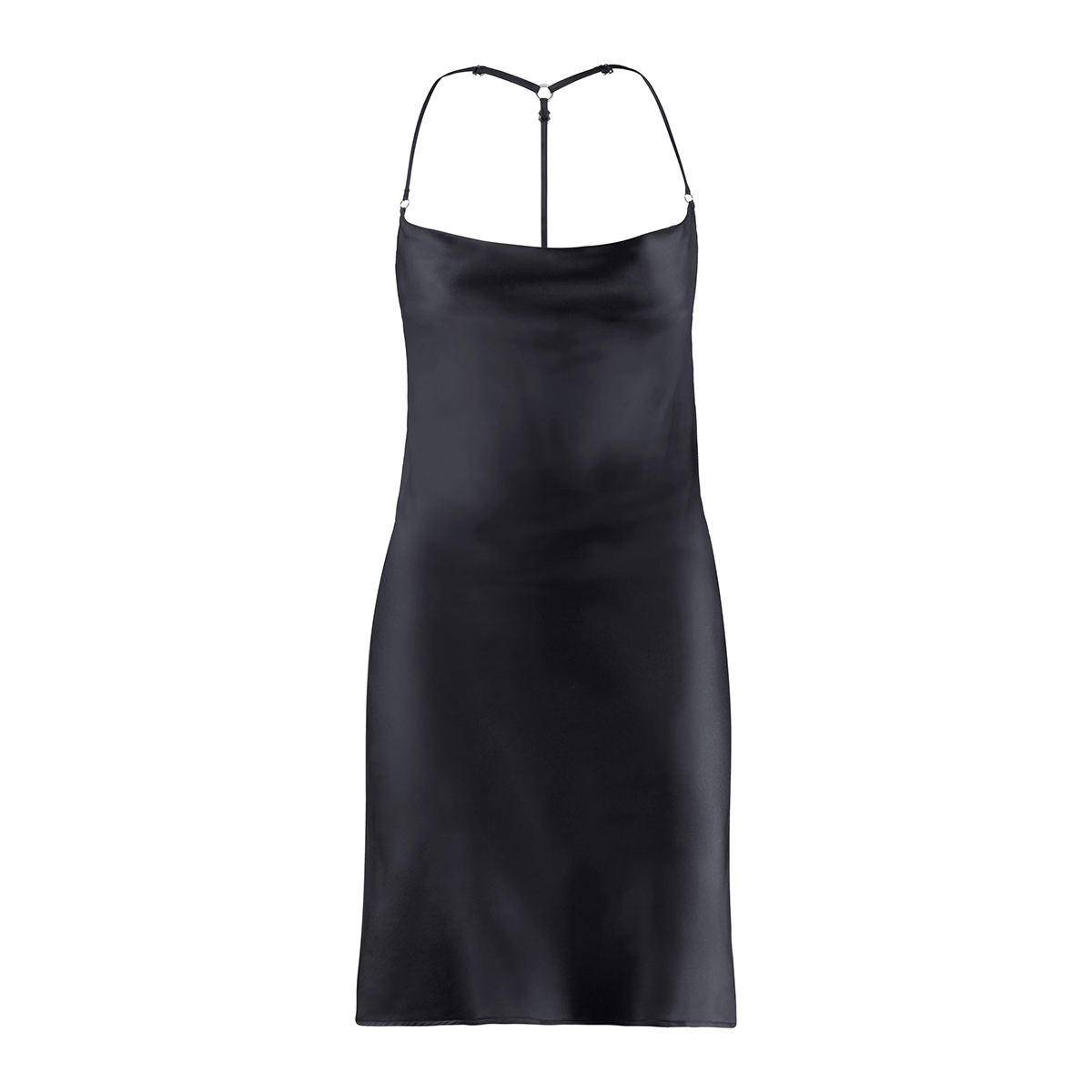 Короткая комбинация свободного кроя с V - образным вырезом на тонких регулирующихся бретелях с "американской" спинкой. Полностью выполнена из шелка. Задняя панель декорирована кружевными вставками.