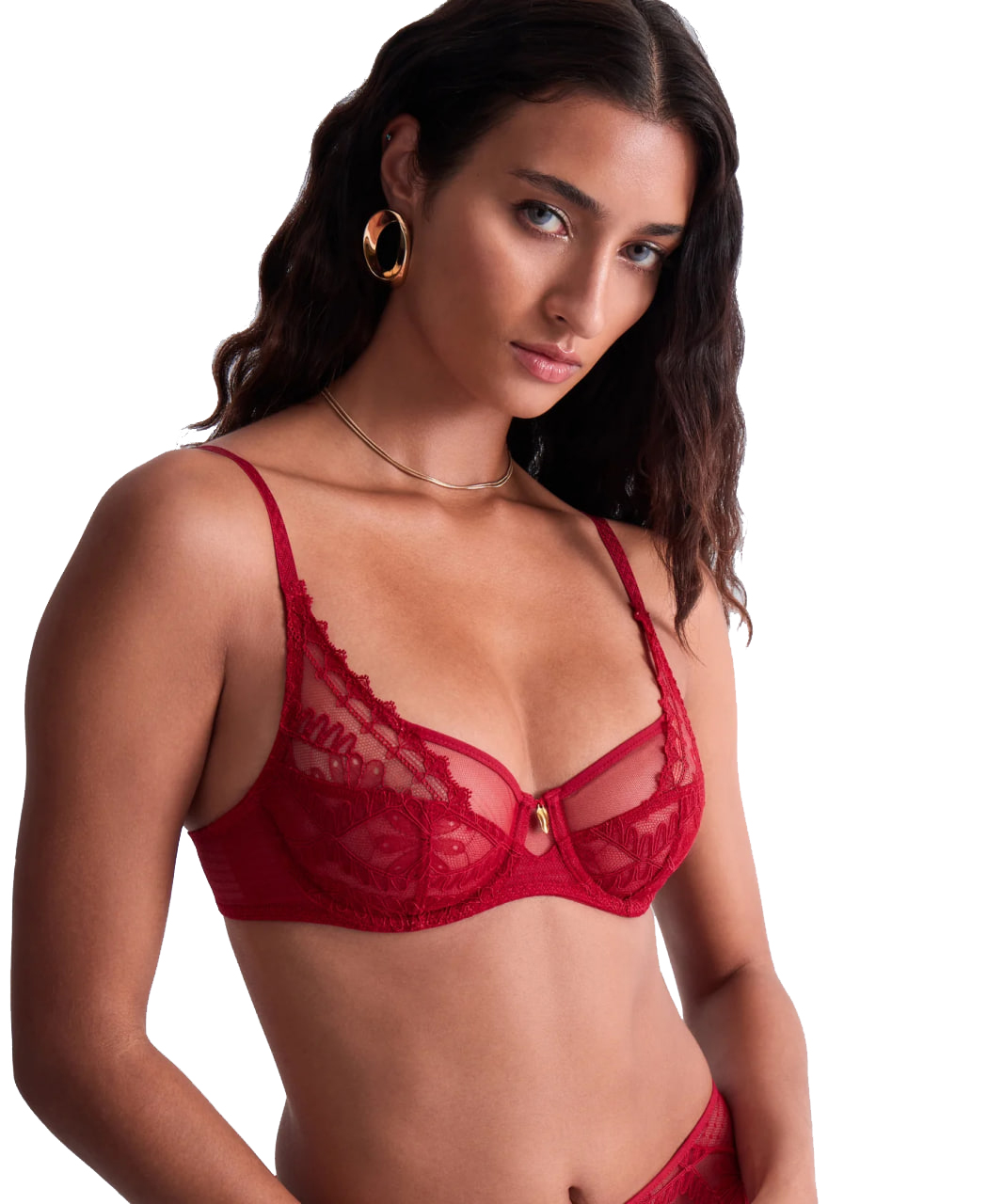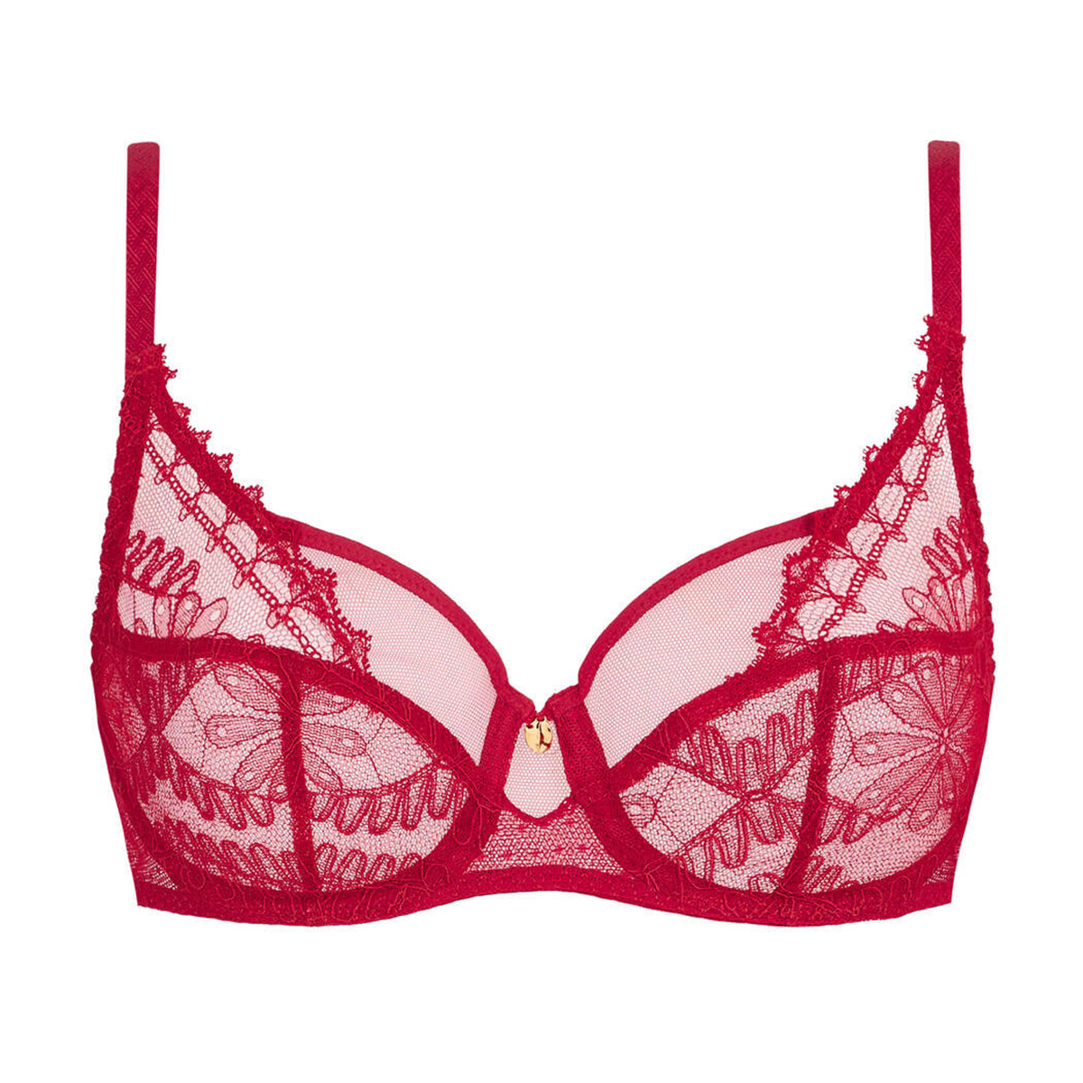 Классический бюстгальтер на косточках с мягкими чашками, выполнен из сексуального нежного цветочного кружева. Между чашек сияет эксклюзивный позолоченный элемент. Фиксированные регулируемые бретели и комфортная U-образная спинка обеспечивают надежную поддержку.