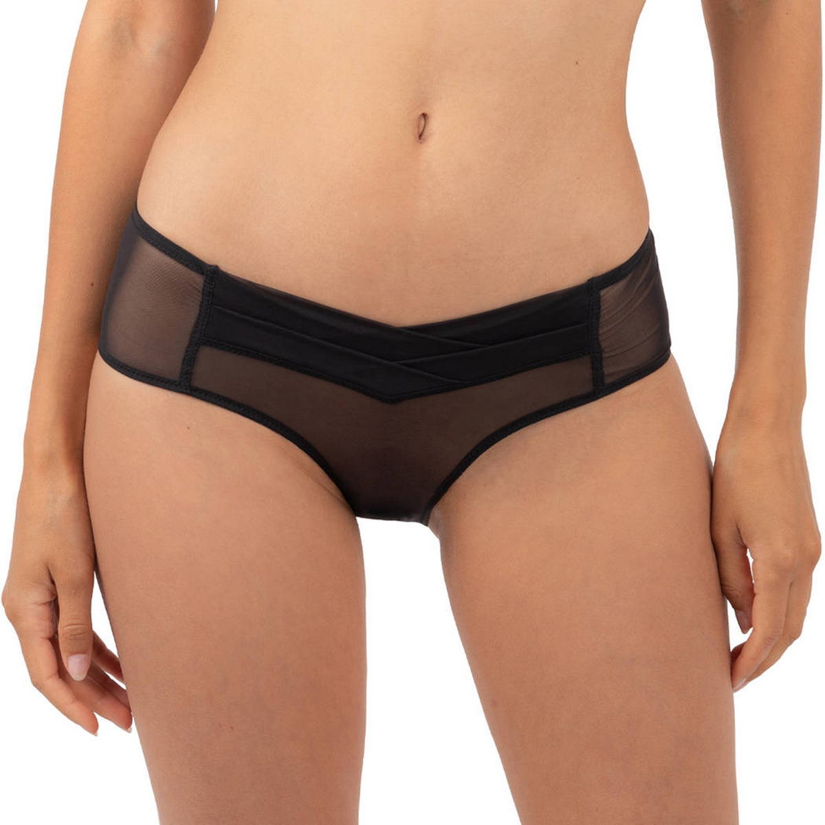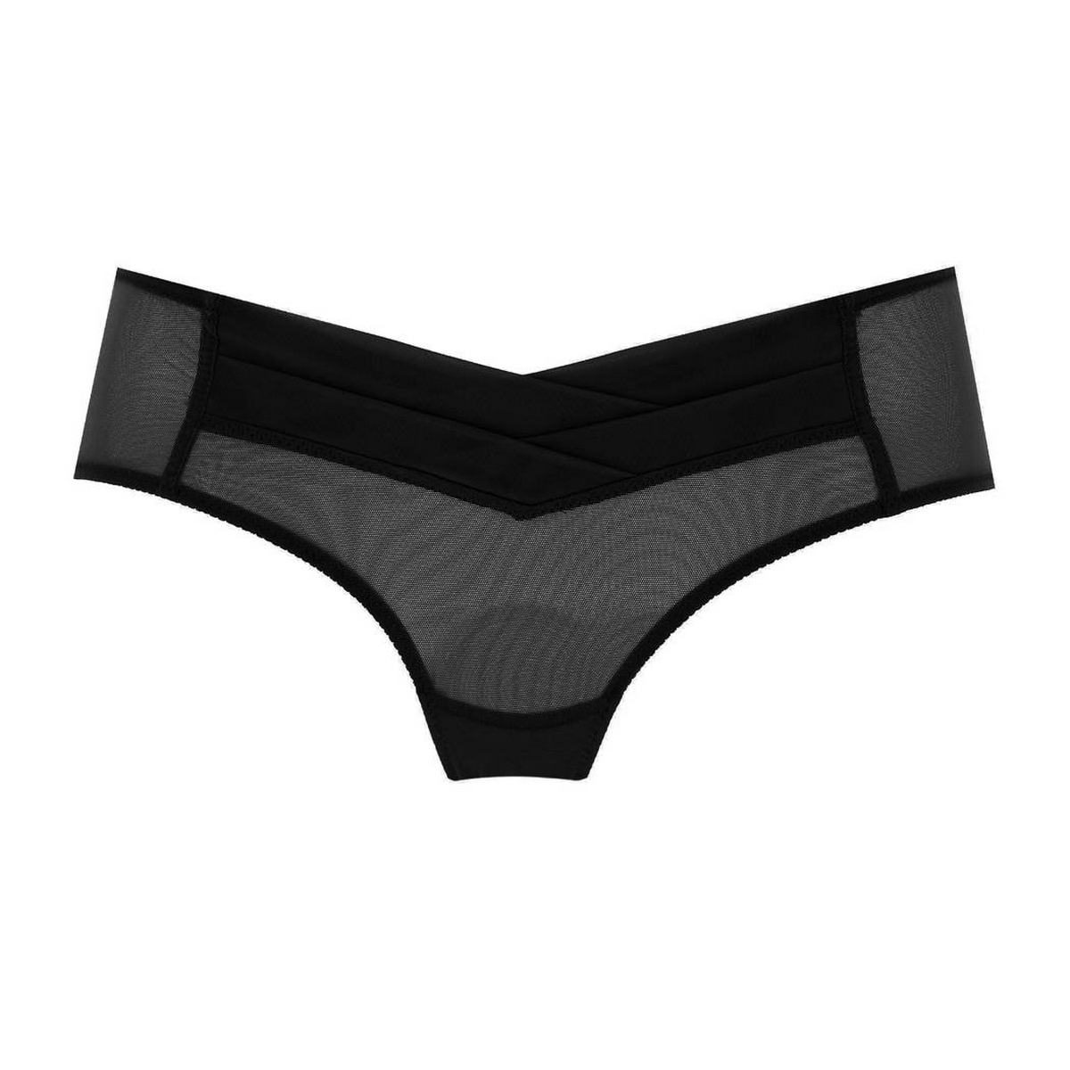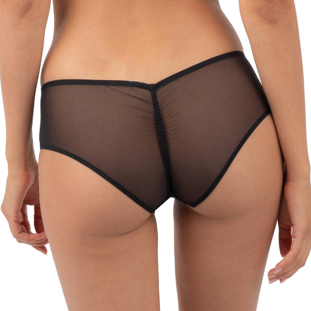 Трусы-боксеры с заниженной посадкой, выполненные полностью из прозрачного тюля.